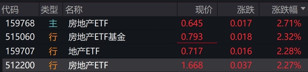 受盤面影響,房地產(chǎn)相關(guān)ETF漲超2%。