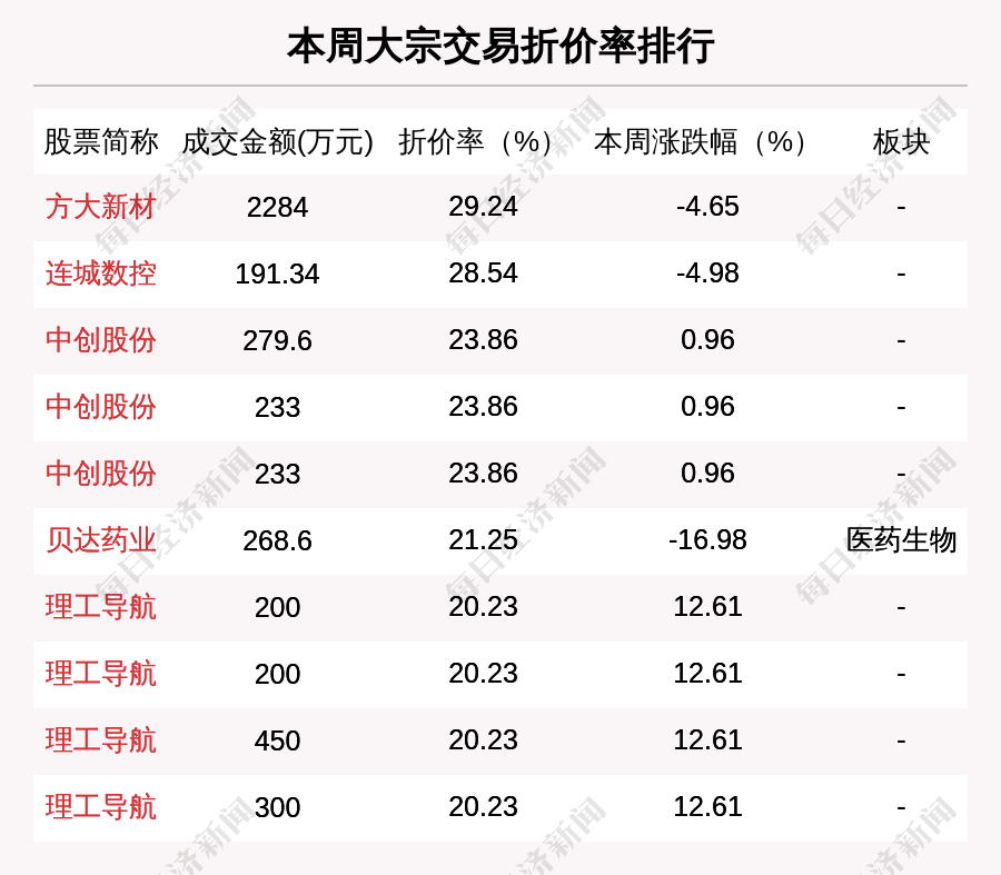 折價交易方面,本周有183筆大宗交易折價率超過10%。
